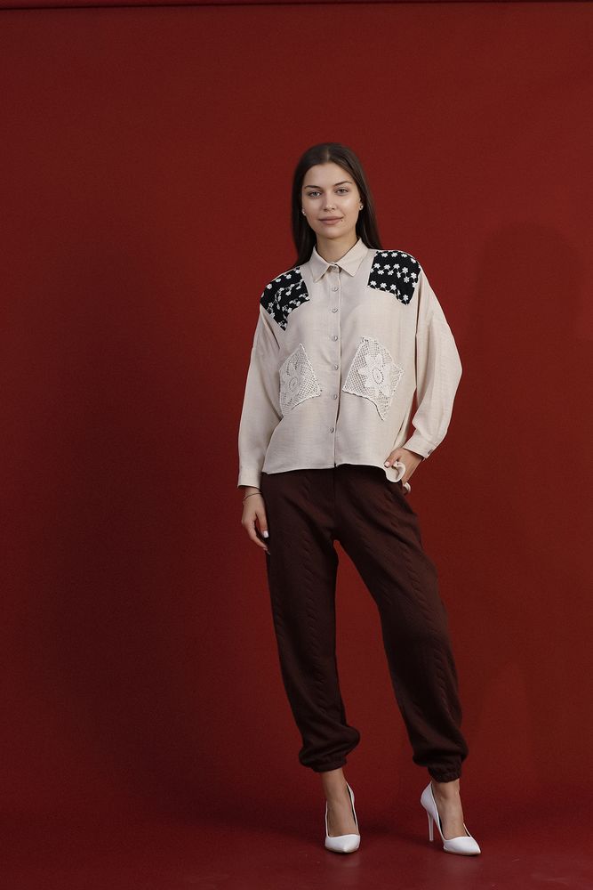 - Contemporary shirt with patch detailing - Durable fabric blend for longevity - Tailored fit; versatile for various occasions - Unique patchwork design; button-down closure
